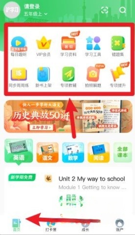 1、开启后,点击首页上“每日趣听”“学习资料”等图标,即可快速进入各功能页面。