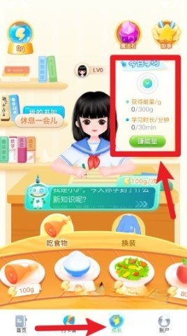 3、前往“成长”页面,查看每日学习任务的完成进度,通过完成任务赚取能量,以此提升虚拟形象。