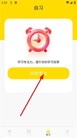 1. 在首页时,点击底部的“自习”选项,即可进入自习页面。