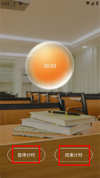 3、于专注计时页面,能够点击暂停计时或者结束计时,以此对专注时长进行控制。