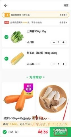 3、按照相同步骤添加其他商品,待所有商品添加完成,点击下方购物车图标,接着就开始结算。