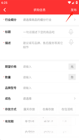 7、详细填写出售物品的相关信息,填写完毕后点击发布。