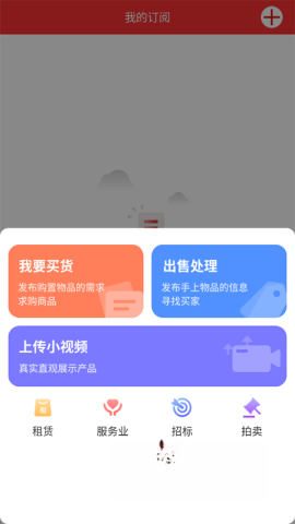 5、回到首页,点击发布按钮,挑选信息类型。