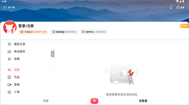 1. 打开搜狐视频TV版,点击左下角的“未登录”选项。