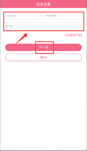 2. 在填写所在省份、城市以及预产期相关信息后,点击“下一步”进行确认。
