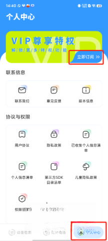 接下来进行第二步,在页面右下角找到并点击“个人中心”,进入后从中寻找到“立即订阅”选项。