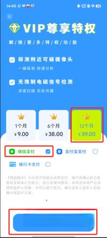 第三步,选择套餐和支付方式后,点击“开通会员”。