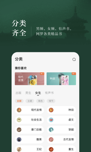 海量正版小说看,现代言情、古代言情、青春校园、同人小说、唯美纯爱、现代都市、异世玄幻、武侠世界、历史穿越、军事战争、悬疑灵异、科幻末世、游戏电竞……你想看的这里都有。