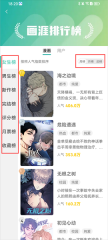5、进入【排行】板块,就能看到各类榜单的漫画排行情况。这里支持切换周榜、月榜以及总榜,要是你不知道该看什么漫画,点击排行榜即可。