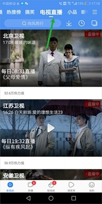 3、此外,用户能够通过将顶部的分页导航栏切换到“电视直播”选项,从而观看各大地方卫视正在热播的电视剧。