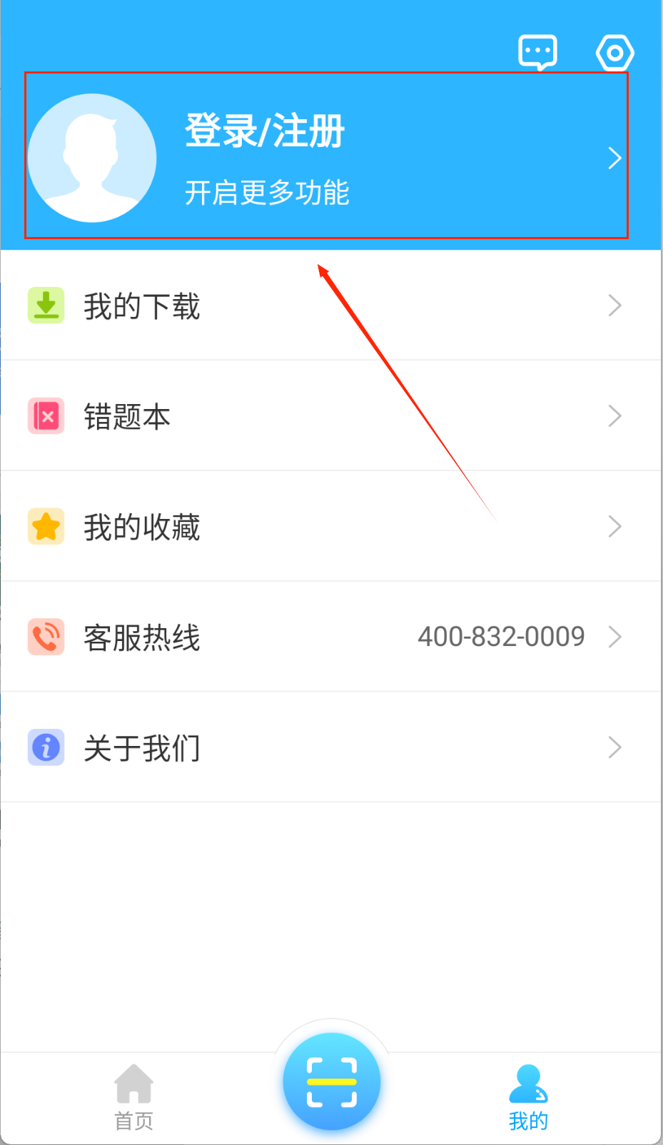 1、打开之后,点击右下角“我的”,完成注册登录,如此便可以使用错题本与收藏功能,还能随时查看学习记录哟。