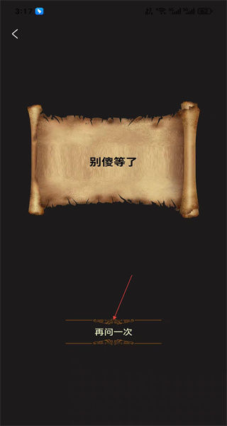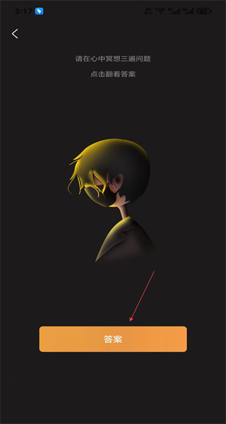 3、当进入问题引导页面时,会看到“请在心中想问题”的提示,按照该指引在心中想好问题后,点击页面上的答案按钮。