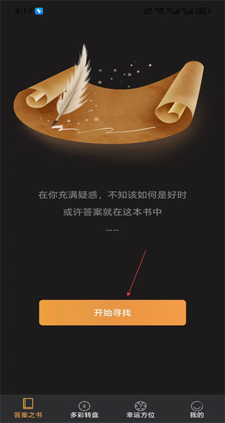 2. 来到答案之书页面,会看到提示语以及开始寻找按钮,点击此按钮,即可进入问题引导的相关界面。