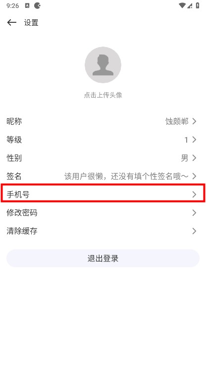 3、进入我的界面后,点击头像,待进入个人资料页面,再点击手机号。