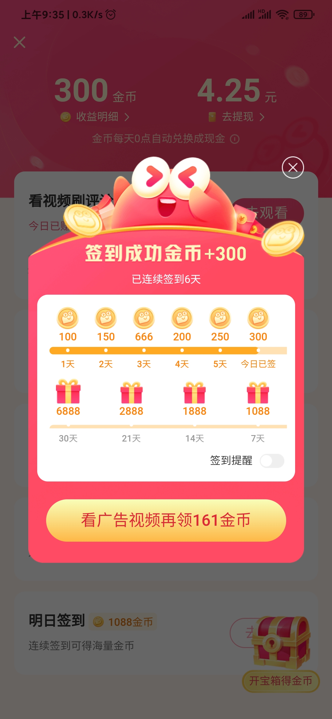 2. 前往皮皮虾任务页,签到一旦成功,每天所获金币会逐渐递增。要知道,这并非随机情况。所以在皮皮虾极速版中,只要完成签到任务,金币不仅不会减少,反而会越来越多。