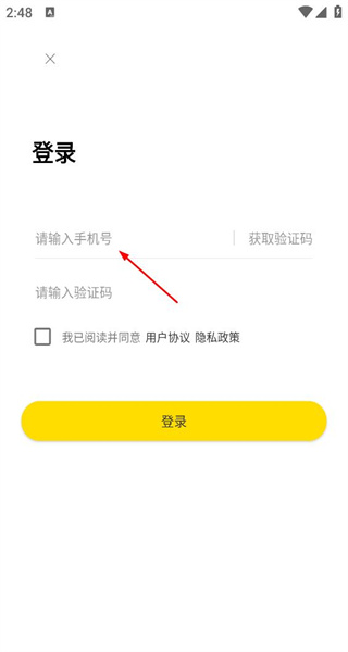 4、来到手机登录信息的填写页面,能看到手机号与验证码的输入栏,此时准备填写相应信息,以推动登录流程继续进行。
