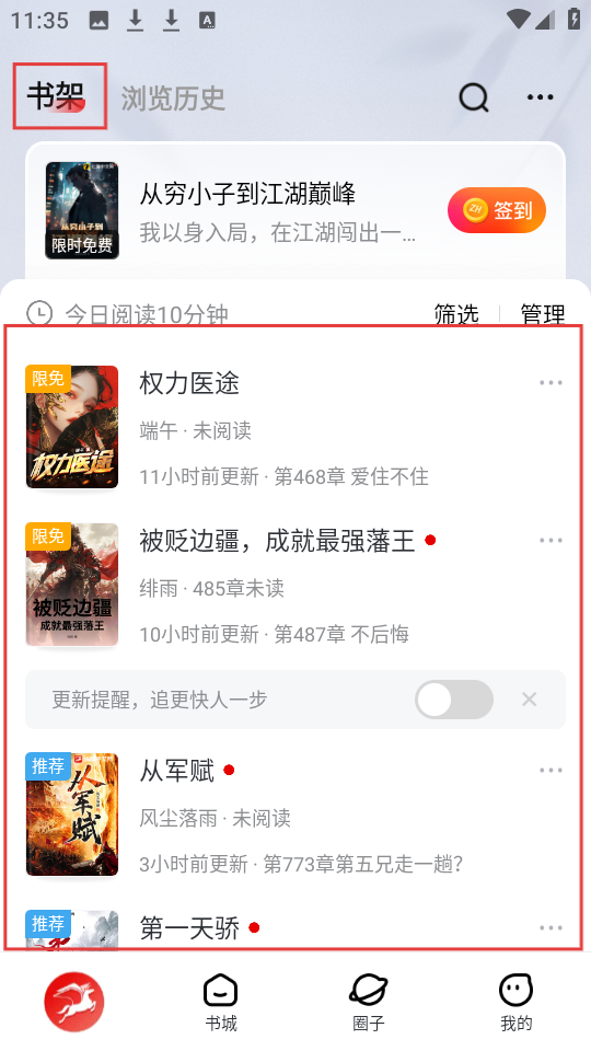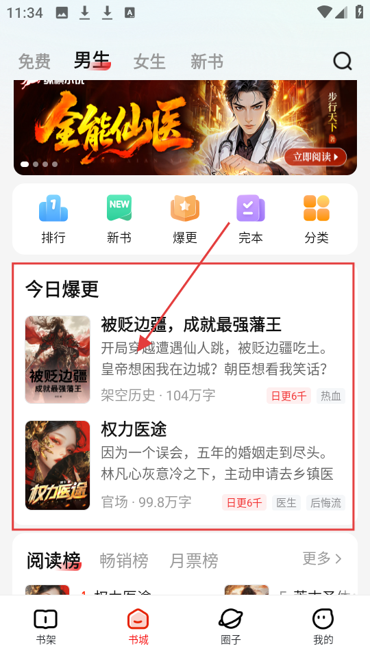1. 当我们进入软件书城页面时,会看到“今日爆更”中的各类书籍。要是对某一本书感兴趣,只需点击书籍标题,就能进入详情页。
