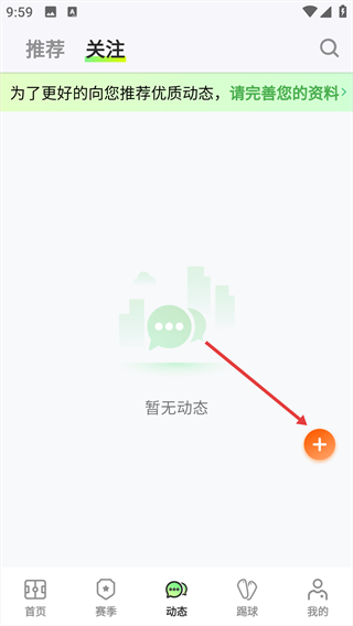 1、在首页底部点击【动态】入口,进入动态页面。