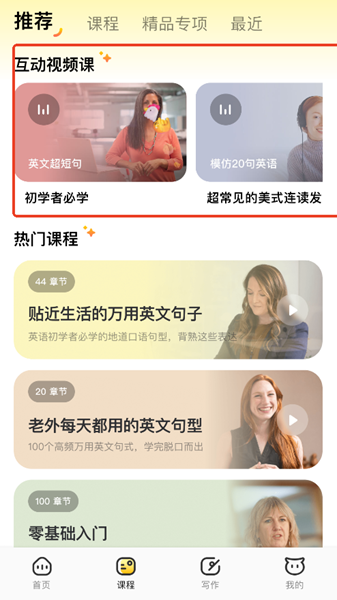 2、在下方课程按钮中,你可以在其中选择想要的课程,软件也拥有课程为你推荐。