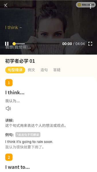 4、点击后即可根据视频开始教学,通过视频同步带来口语内容。