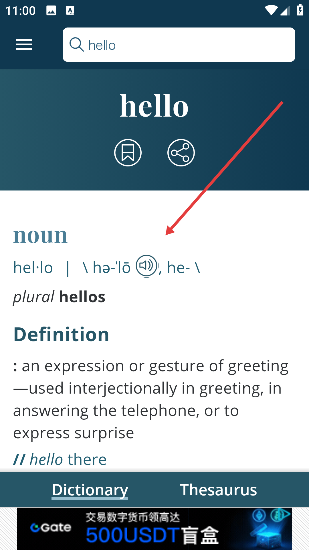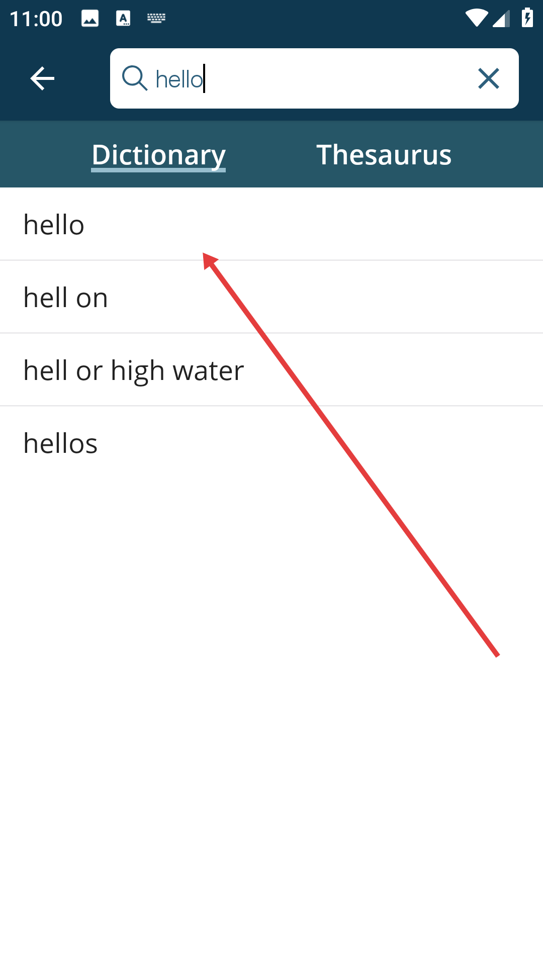 3、在搜索结果中点击目标单词,如【hello】。