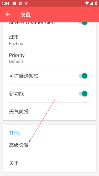 3、进入设置界面后,找到并点击【高级设置】选项,即可进入高级设置界面。