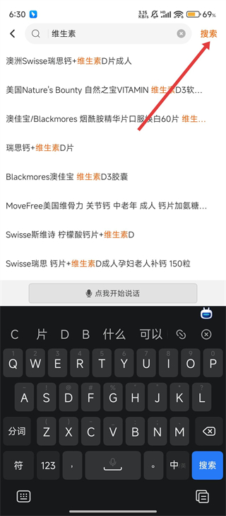 1、打开药师帮App,在搜索框输入药品名如【维生素】,点击【搜索】,简单又高效。