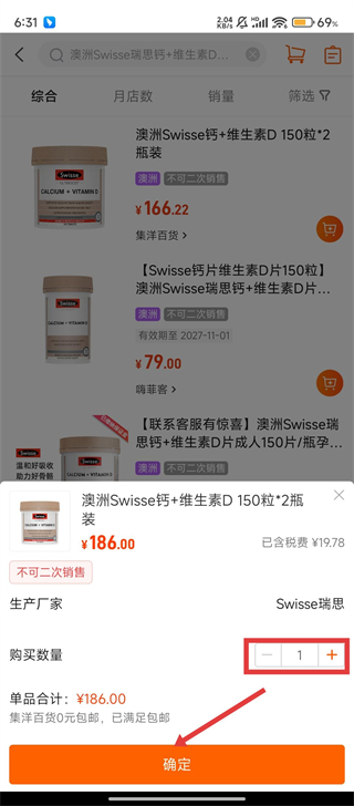 3、在弹出的购买数量框里,确认数量后点击【确定】,把药品稳稳放进购物车,就差最后一步咯。