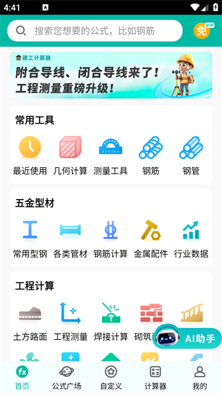 1整合了几何运算、土方量核算、混凝土材料配比等三十多类工程领域高频使用的公式,能满足工地现场绝大多数计算需求,且操作流程直观易上手。