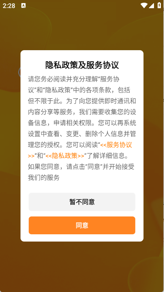 1、用户首先在3G游戏网橙子租号,查看并同意隐私政策与用户协议。