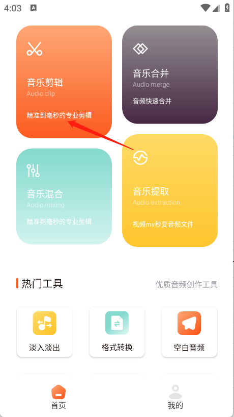 2、覆盖多样音频处理场景,热门工具如淡入淡出、格式转换等,一站式解决剪辑难题。