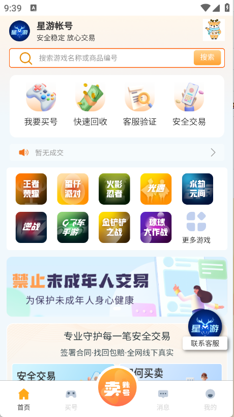登录星游交易平台,完成实名认证后点击卖号,联系对应游戏的客服沟通账号回收事宜。