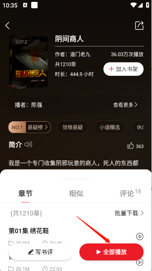 4、点开想听的资源进入详情页,点击“全部播放”。