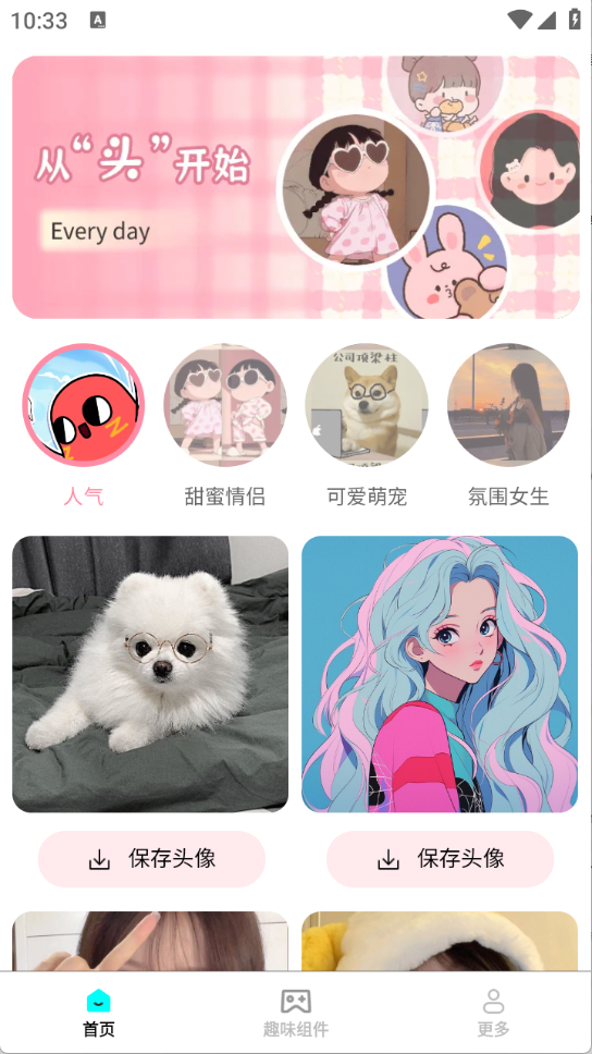 2、首页页面汇集了众多的壁纸类型,可爱萌宠、氛围女生以及甜蜜情侣等类型都有。