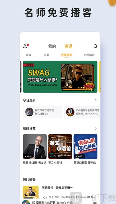 3这里有一个跟读功能,覆盖的内容特别广,你能随时在线练习英语的听和读,这样就能让自己的发音越来越准确了。
