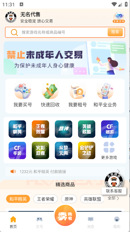 出售快速的游戏卖号平台app