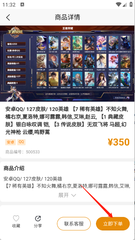 4、用户找到所需的游戏账号后,点击“立即下单”按钮即可完成操作。