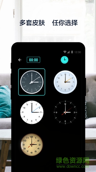 这款时钟应用界面设计简约大方,以黑白配色为主,多种时钟样式可供选择,还能将时钟设置为锁屏显示。感兴趣的用户可以前往绿色资源网下载体验。