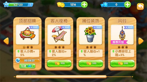 当后厨的硬件设施、食材储备和环境布置都完成优化后,若营收增长陷入瓶颈,很可能是人力配置不足拖慢了出餐速度。此时可依据门店的实际运营规模补充相应人手:招聘一名服务员需消耗20颗钻石,若钻石数量不足,可通过挑战关卡提升等级、每日登录领取奖励或前往商城选购等方式获取。尽管增加人力会拉高运营成本,但能使整体收益提升10%。