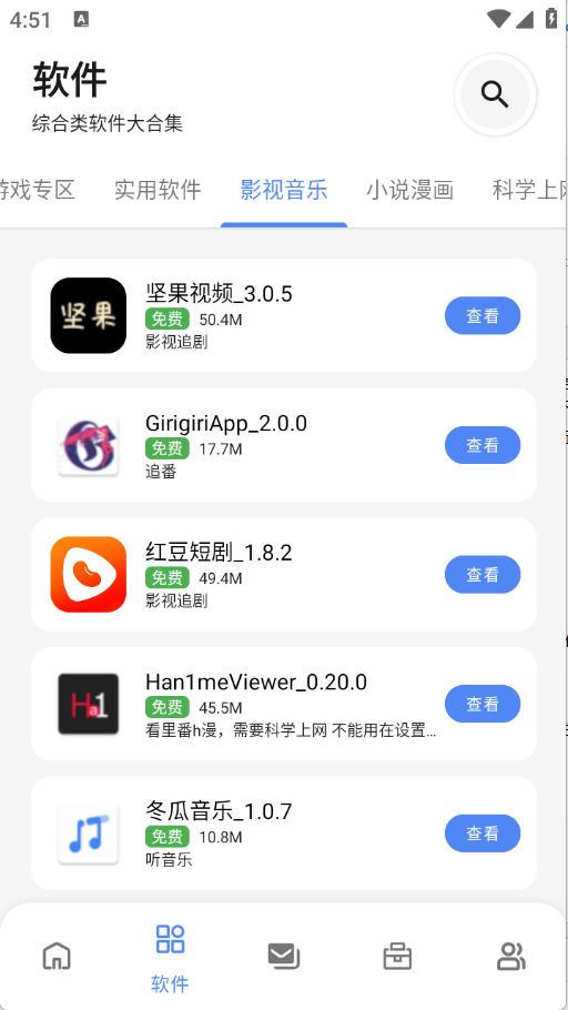 3这款软件的界面划分了丰富的内容类别,涵盖了游戏、影视、音乐等多个领域。