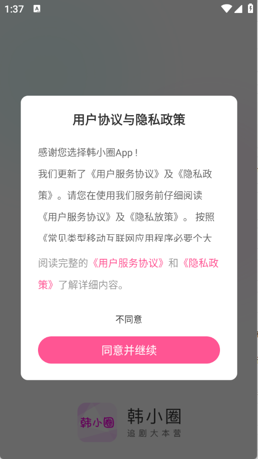 1、用户首先在3G游戏网韩小圈,同意隐私政策与协议。