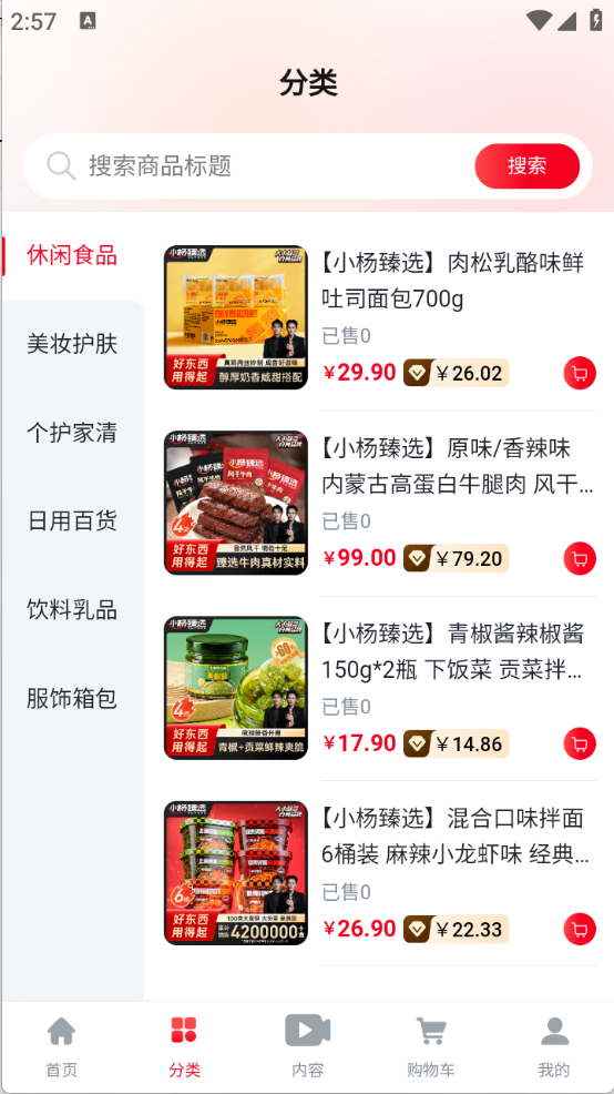 3、分类页面对商品进行了细致的分类,涵盖了日用百货、饮料乳品和美妆护肤等类别。