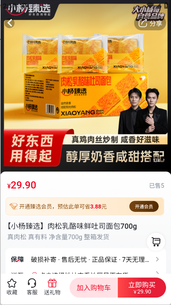 5、点击进入商品详情页面后,可选择将商品加入购物车,也能直接点击立即购买。