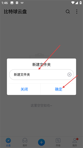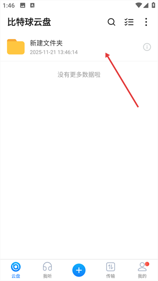 4、回到云盘页面,就能看到刚创建的文件夹已经出现在列表里了。