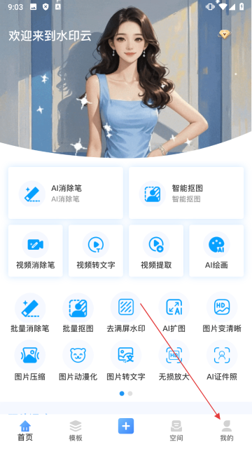 1在水印云首页,点击【我的】按钮,就能进入个人界面。