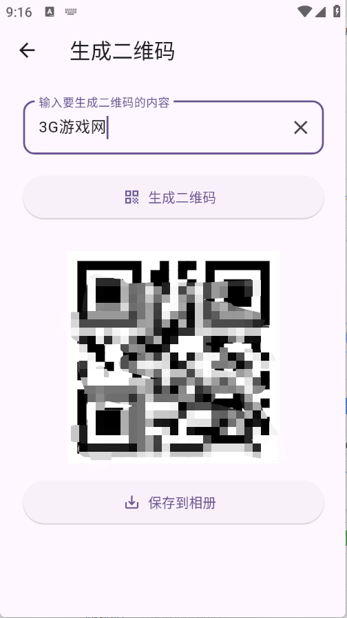4在对应位置填入指定的二维码内容后,点击生成按钮就能完成操作,生成的结果还可以保存至手机相册。