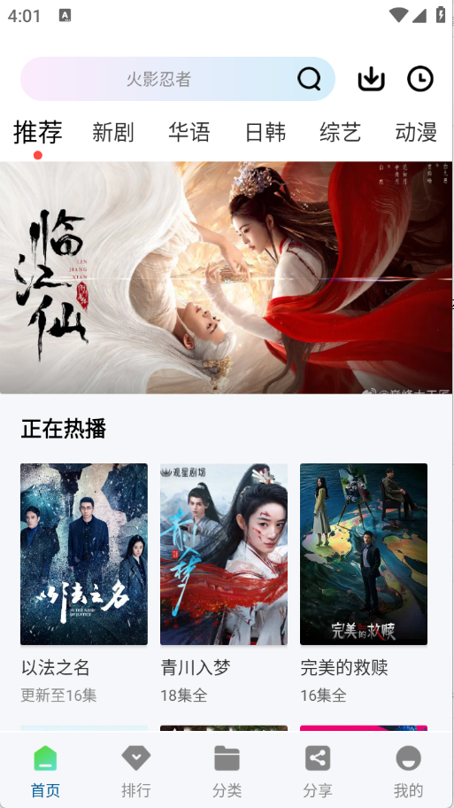 2首页顶部栏汇聚了丰富多样的影视内容,涵盖电视剧、电影、综艺等多种类型。