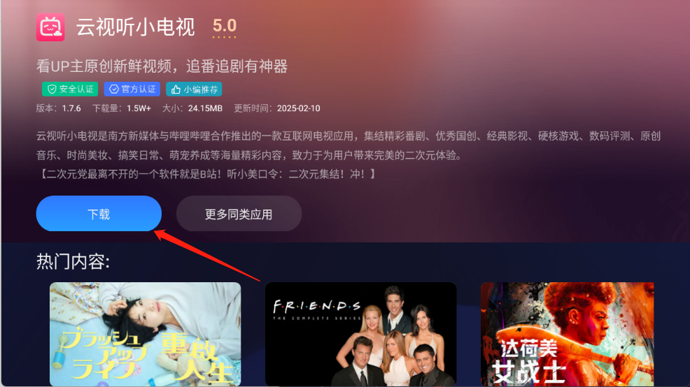 5、用户找到所需的电视软件资源并点击进入详情页后,能看到详细介绍和耳机图标,直接点击“”,等待安装完成就可以了。