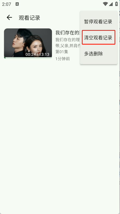 3、点击“清空观看记录”即可。