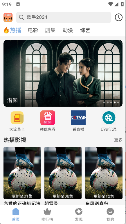 2、首页顶部栏中汇集了很多的影视资源,电视剧、电影以及综艺等类型都有。